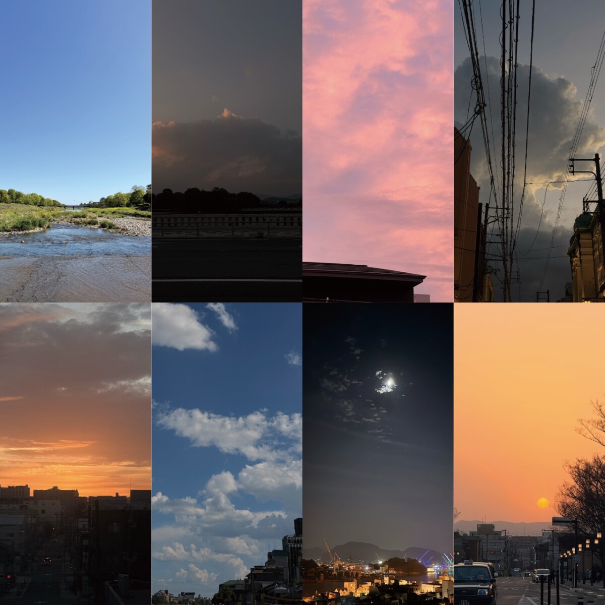 このおかげで大きな変化として、夕方に街中を歩く時間が増えたことが私を大きく変えた。御幸町高辻にあるバイト先、鴨川、堀川通など屋外にいてそこから見える空は、かつて私が見てきた空とはまるで違っていた。白く光る朝の空に起こされ、雲がもくもくと出た空に不安を駆られ、ピンク色に染まる夕方の空との別れを惜しみ、マンションの前で見る澄んだ星空で一日が終わる。